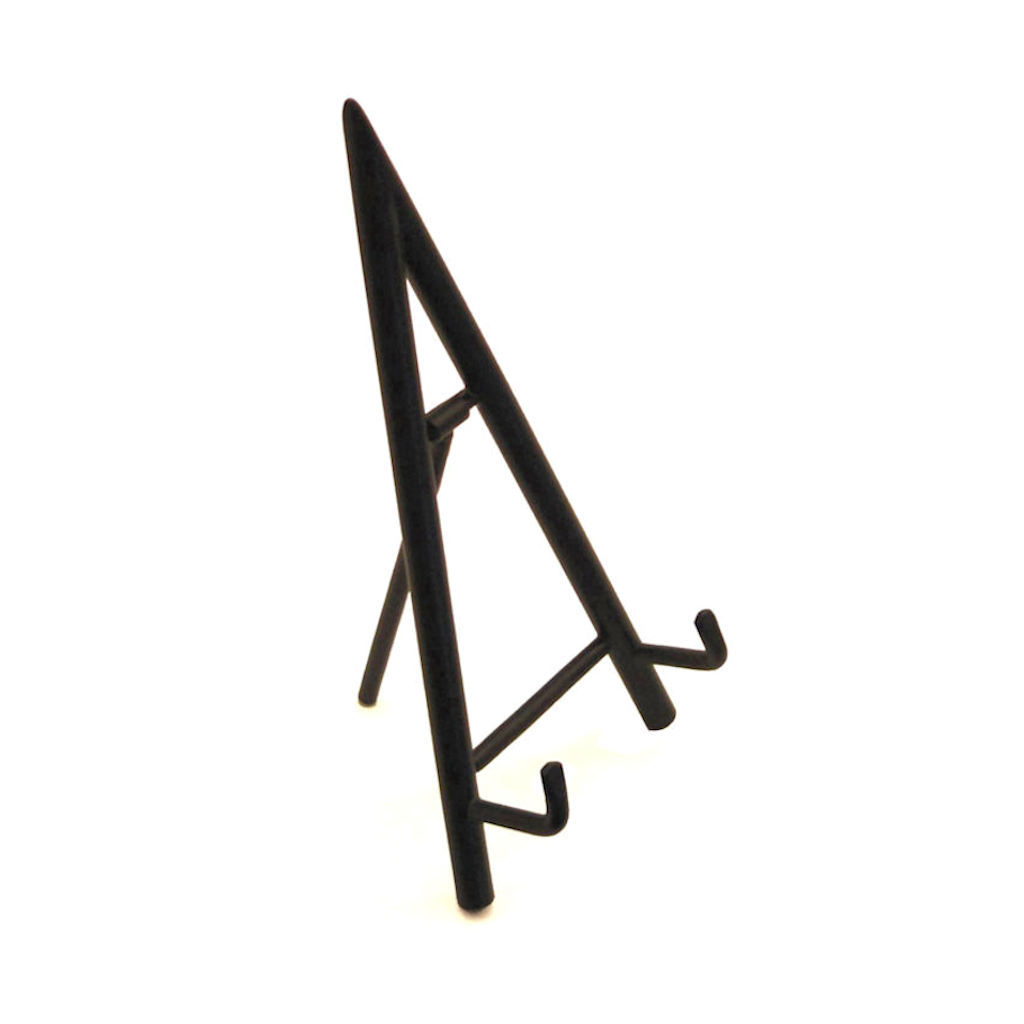 - This upscale metal table top display easel is available in elegant matte black finish.